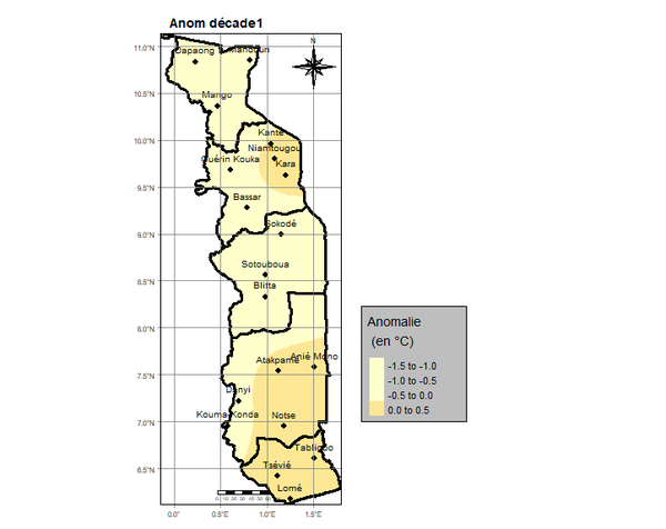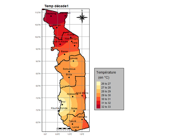 La première décade est marquée par des pluies localisées sur l’ensemble du pays. Elles ont varié de 1,0 mm à Niamtougou en un (1) jour à 82,6 mm à Kpalimé Tové en cinq (5) jours. L’analyse révèle que les régions Maritime et Plateaux sont les plus arrosées.