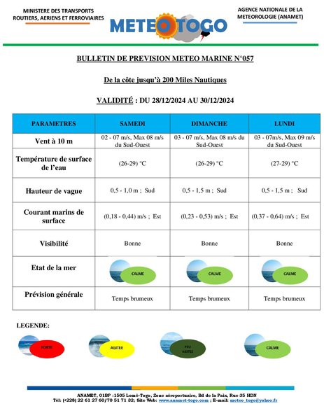 Bulletin marine du 28 au 30 Décembre 2024