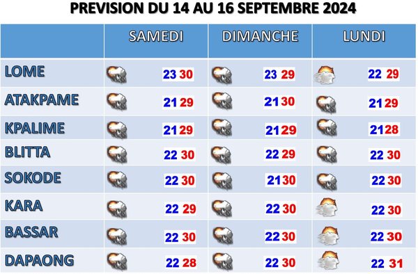 Bulletin de trois (03) jours du 14 au 16 Septembre 2024