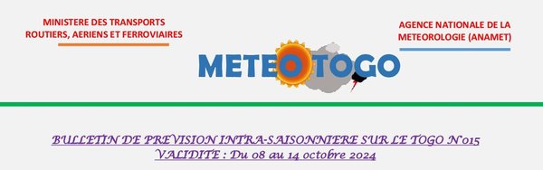 Les 11 et 12 octobre, des manifestations pluvio-orageuses modérées sont attendues dans la Maritime, les Plateaux, la Centrale et la Kara.