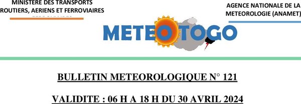 - Dans l’après-midi, des activités orageuses associées de pluies localisées sont prévues dans les Plateaux, la Centrale et la Kara.