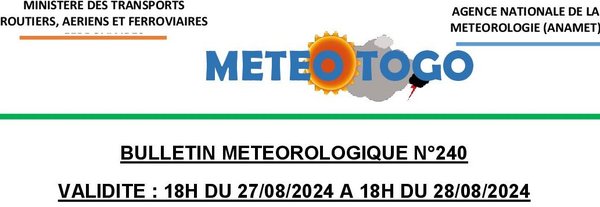 - Dans la journée de demain, Le ciel sera nuageux sur l’ensemble du pays avec des pluies faibles localisées dans la Maritime et les Plateaux.