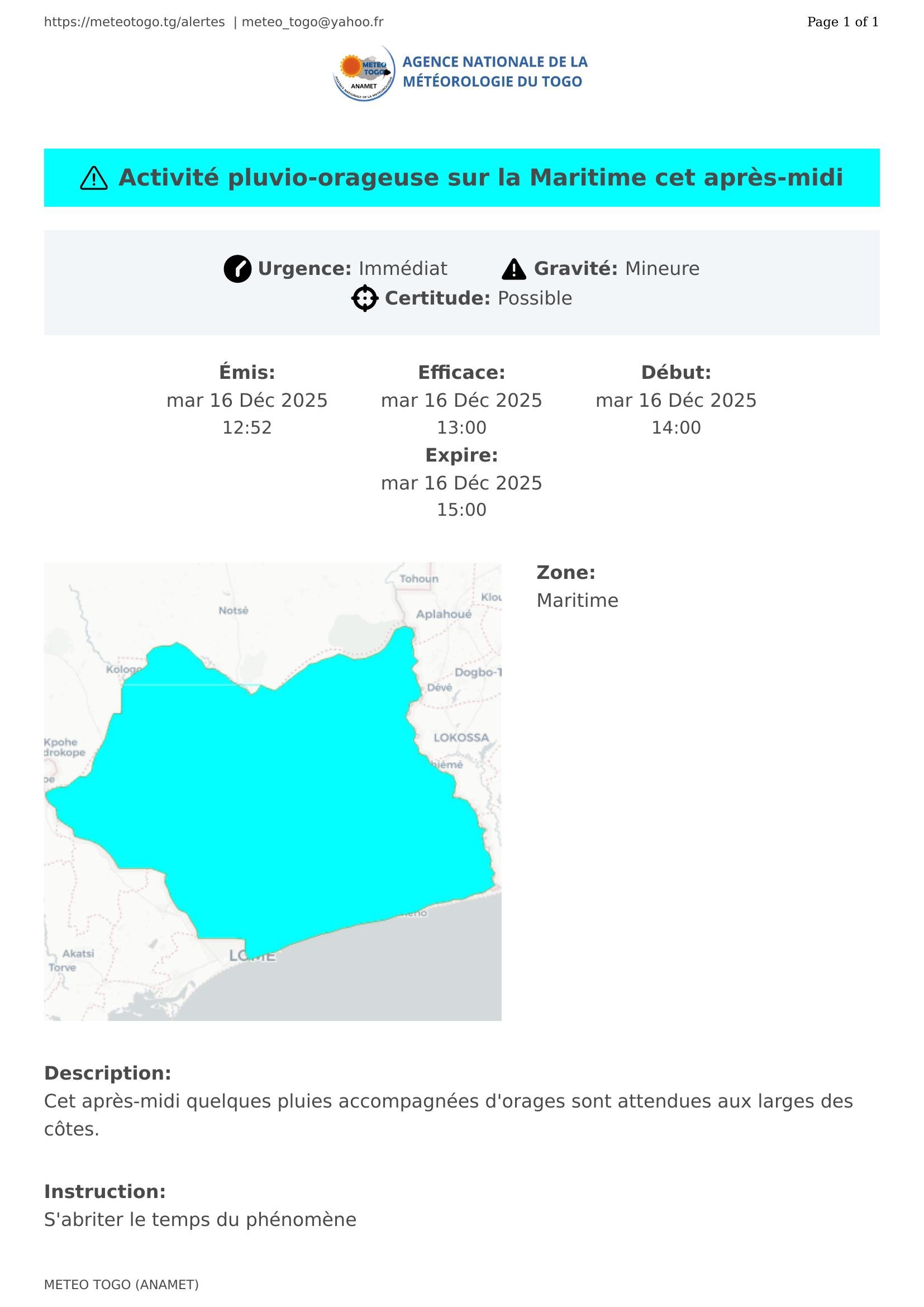 Activité pluvio-orageuse sur la Maritime cet après-midi