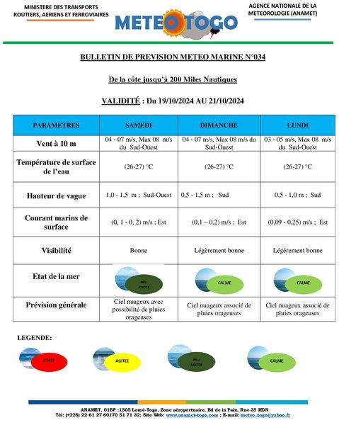 Bulletin de prévision marine du 19 au 21 Octobre 2024