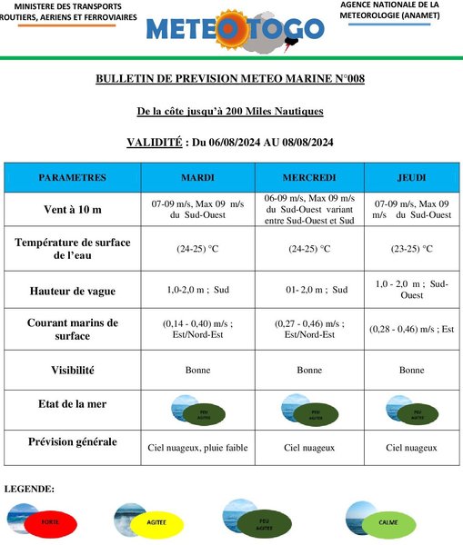 Prévision météo-marine du 06 au 08 Août 2024