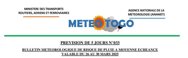- Pluies faibles localisées dans les Savanes, la Kara et la Centrale.