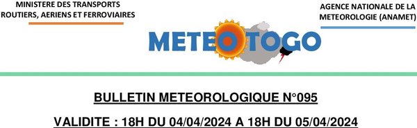 Dans la journée de demain, des manifestations orageuses ou pluvio-orageuses sont attendues dans la Maritime, les Plateaux et la Centrale. Le temps sera nuageux dans les autres régions.