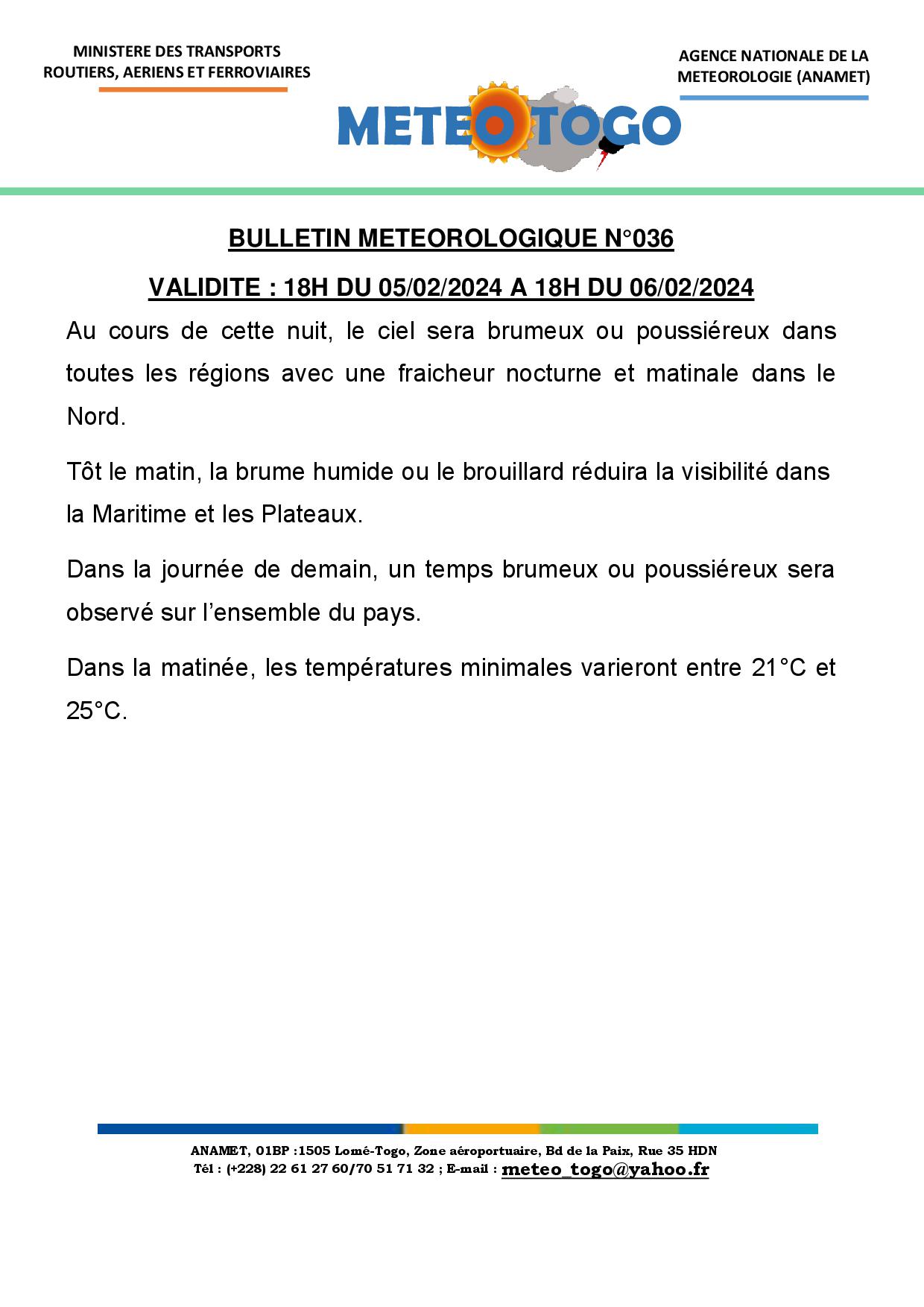 Dans la journée de demain, un temps brumeux ou poussiéreux sera observé sur l’ensemble du pays.