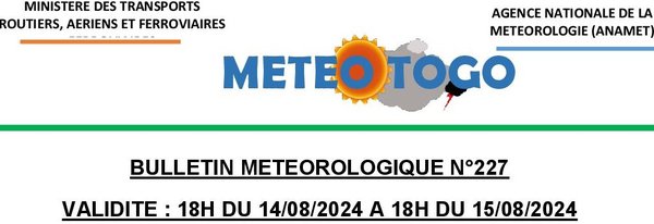 Dans la journée de demain, des activités pluvieuses par endroits sont attendues dans la Centrale, la Kara et les Savanes. Dans la Maritime, on observera quelques pluies fines localisées.