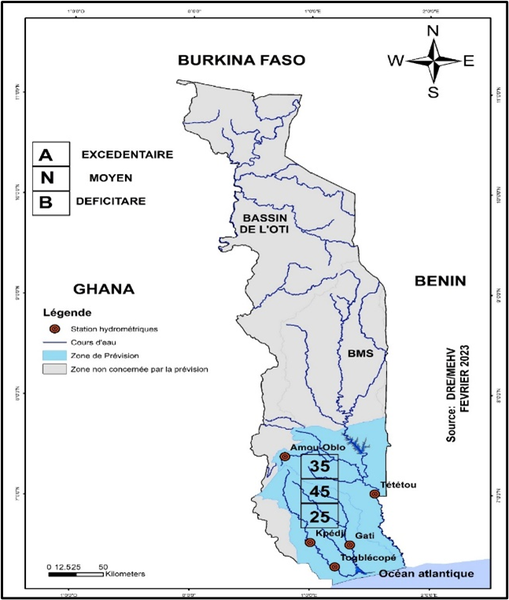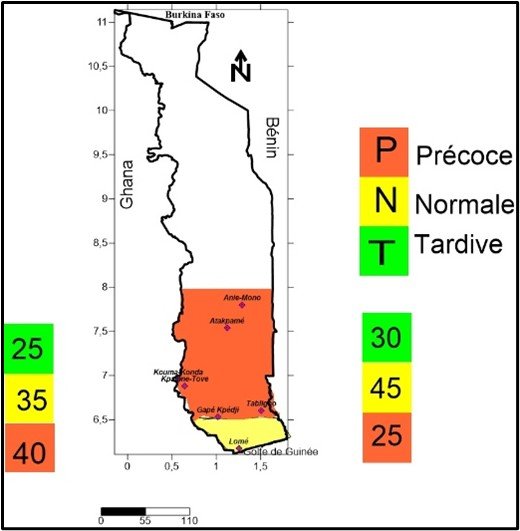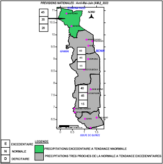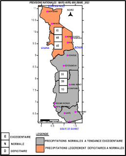 Au cours de la période de mars, avril et mai, il est prévu dans les régions Maritimes, Plateaux et Centrale, des précipitations normales qui évolueront vers une situation excédentaire. Par contre, dans la Kara et dans les Savanes, il est attendu une pluviométrie déficitaire à tendance normale.